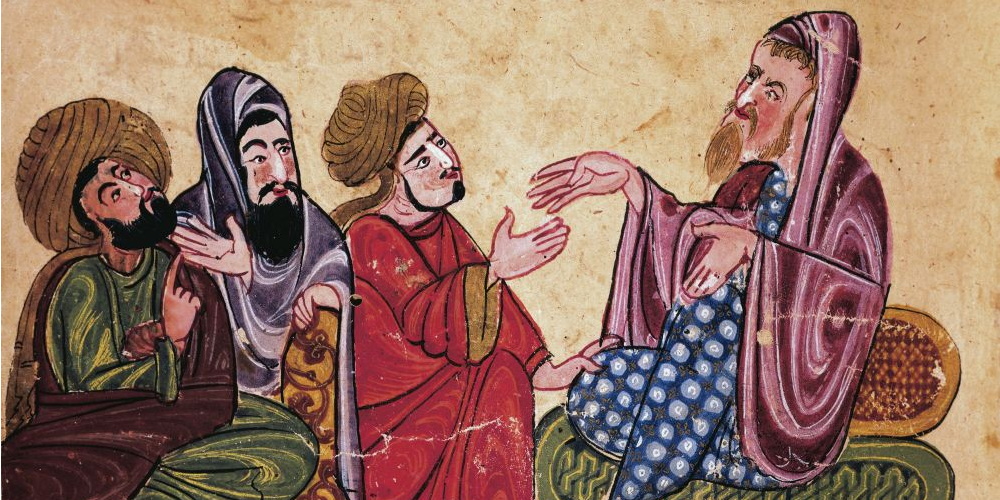 Miniature tirée de : ‘Les meilleures sentences et les plus précieux dictons’ d’al-Mubashir 13ᵉ s., conservé au Palais de Topkapi à İstanbul.